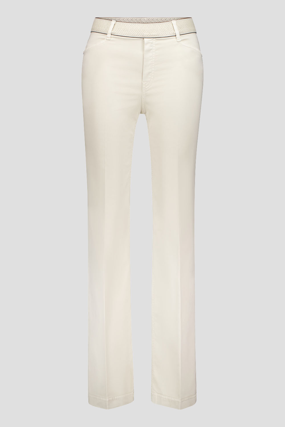 Die ZILLA1-80691 kombiniert modernen Slim Fit mit bequemem Tragekomfort im praktischen Pull-on-Style. Ein dekorativer Gummibund mit Gürtelschlaufen sorgt für modische Raffinesse, während der Bootcut-Schnitt dem Bein eine feminine Weite verleiht. Mit einer Schrittlänge von 82 cm und einer Fußweite von 52 cm bietet sie eine optimale Passform und unterstreicht eine elegante Silhouette